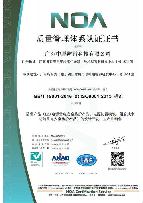 廣東中鵬防雷科技有限公司 10年專注高端防雷產品研發制造